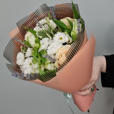 Букет из белых хризантем и альстромерий